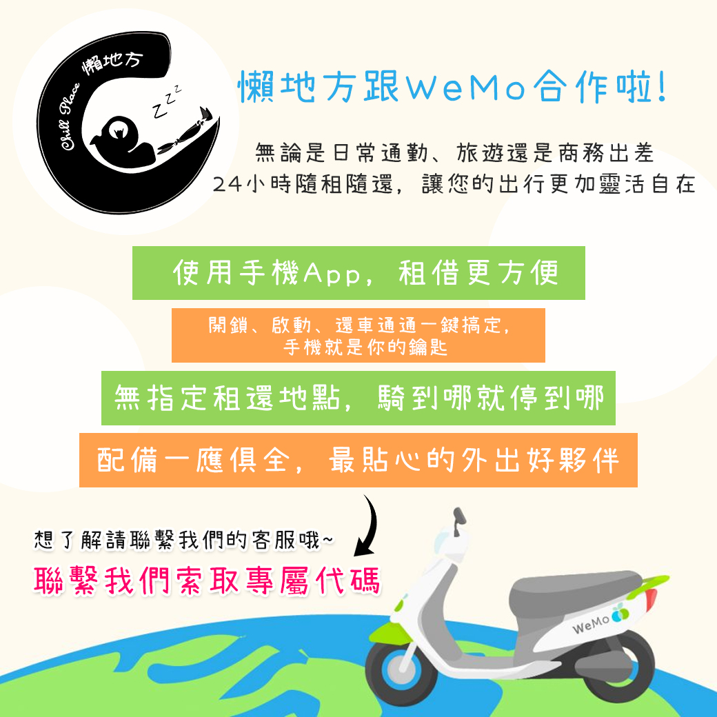 我們跟WeMo合作啦~ 租借機車簡單又輕鬆!